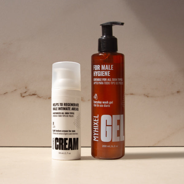 MYHIXEL Gel & Cream es el dúo ideal para los hombres que buscan un cuidado íntimo diario sencillo pero eficaz. No se trata sólo de higiene, se trata de sentirse bien con uno mismo.