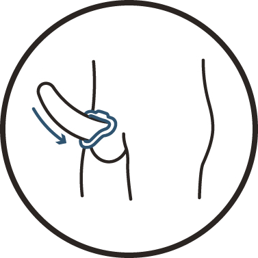 Start by holding the rigid part of the ring in one hand. This part should be placed at the base of the penis. Gently stretch the elastic band, designed to fit perfectly. Carefully slide the ring down to the base of the penis, making sure the rigid part stays at the bottom. Both the elastic band and the rigid base are coated with medical-grade silicone for greater comfort.