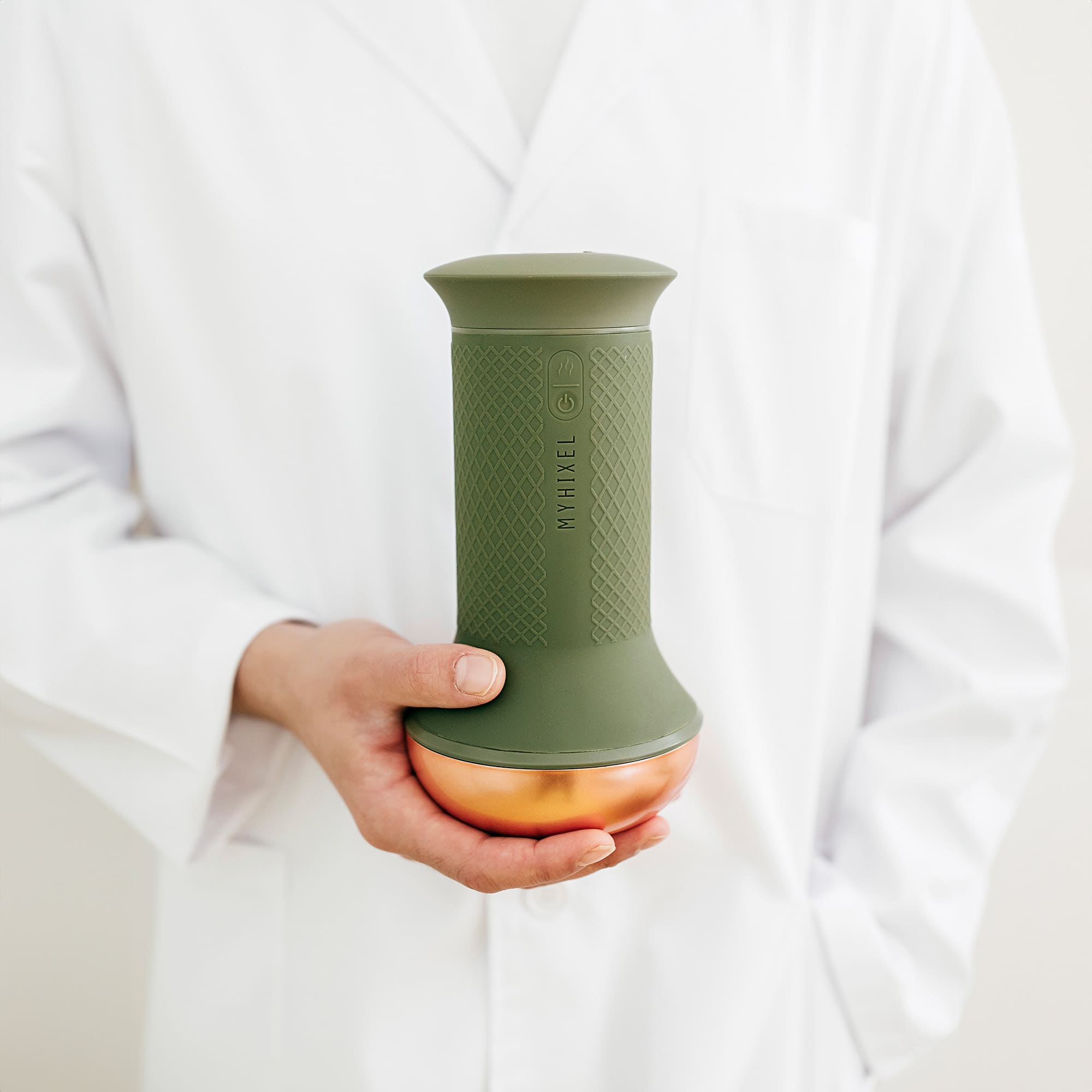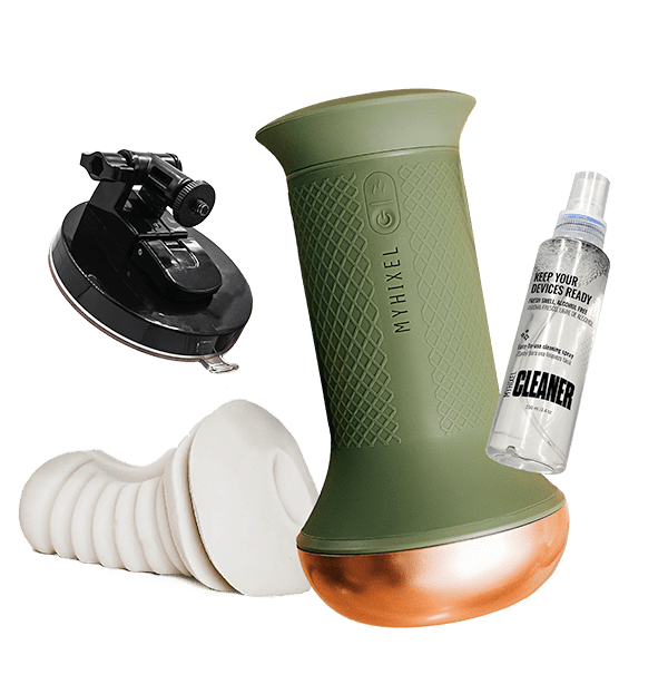 MYHIXEL I, the green model, is the original device. It has a warming system, an anatomically realistic interior that simulates penetration, and vibrations designed to help with various sexual conditions.